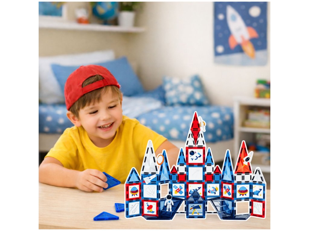 Táto sada magnetických stavebných kociek je jedinečná hračka, ktorá rozvíja detskú fantáziu, kreativitu a manuálne zručnosti. Vďaka inovatívnemu dizajnu a magnetom sa diely ľahko spájajú, čo deťom umožňuje stavať rôzne konštrukcie – od jednoduchých tvarov až po impozantné budovy pripomínajúce hrady, vozidlá alebo fantastické priestorové konštrukcie.