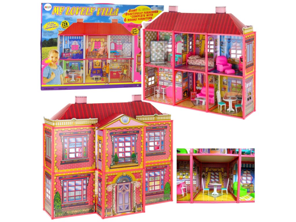 Villa Veľký domček pre bábiky 6 izieb Nábytok Príslušenstvo 128 el.