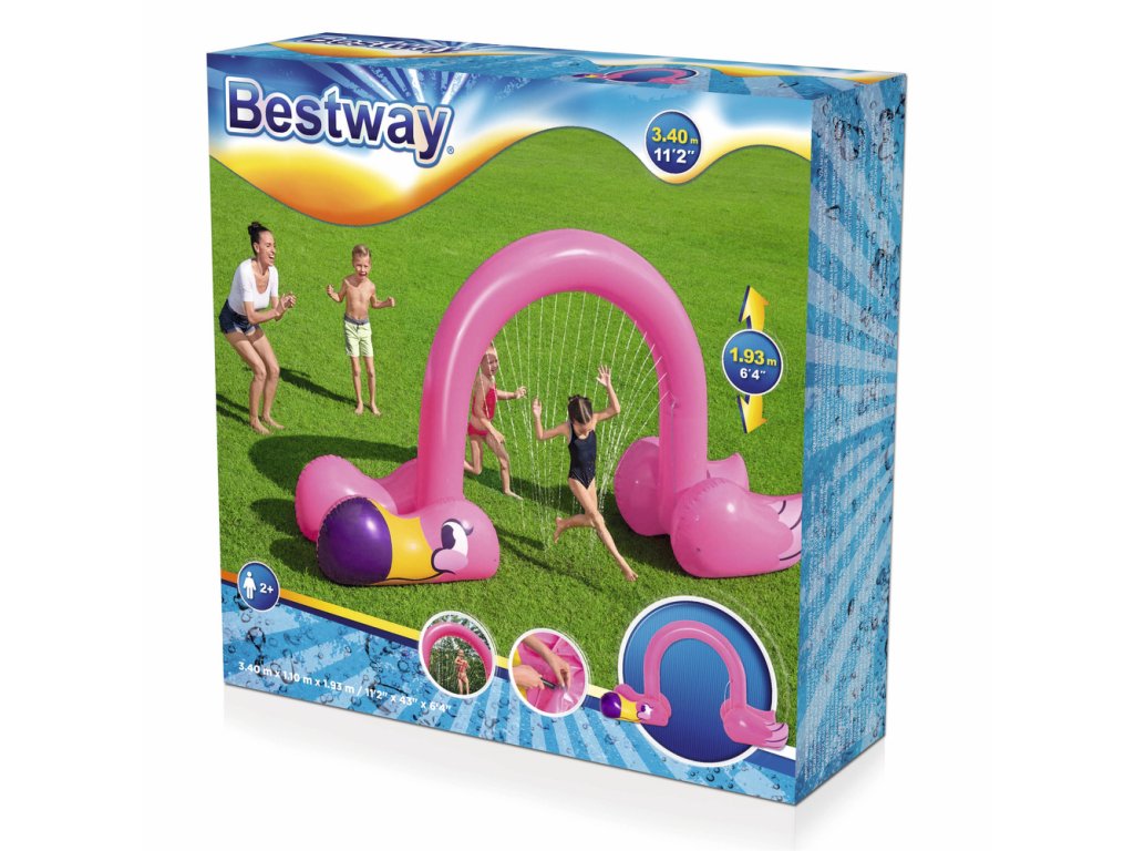 Veľká nafukovacia brána so zavlažovačmi s motívom plameniaka a kreatívnymi funkciami umožní deťom objavovať a používať svoju fantáziu, zatiaľ čo sú aktívne a hrajú sa vonku. Teraz môžete zabudnúť na nudné zavlažovače. Sledujte, ako fantázia vašich detí letí do výšky, keď bežia pod obrovským plameniakom a sú postriekané zábavnými zavlažovačmi vo vnútri! Plameniak je vysoký 1,93 m, takže sa do zábavy môžu zapojiť aj dospelí. Vďaka vodnej základni pre extra stabilitu zostane plameniak stáť a chladný aj vo veterných dňoch. Ideálny na párty, stretnutia a letné dni, deti si s týmto zavlažovačom vytvoria spomienky na celý život. Nafukovacia vodná fontána sa ľahko nafúka, vyfúka a skladuje.