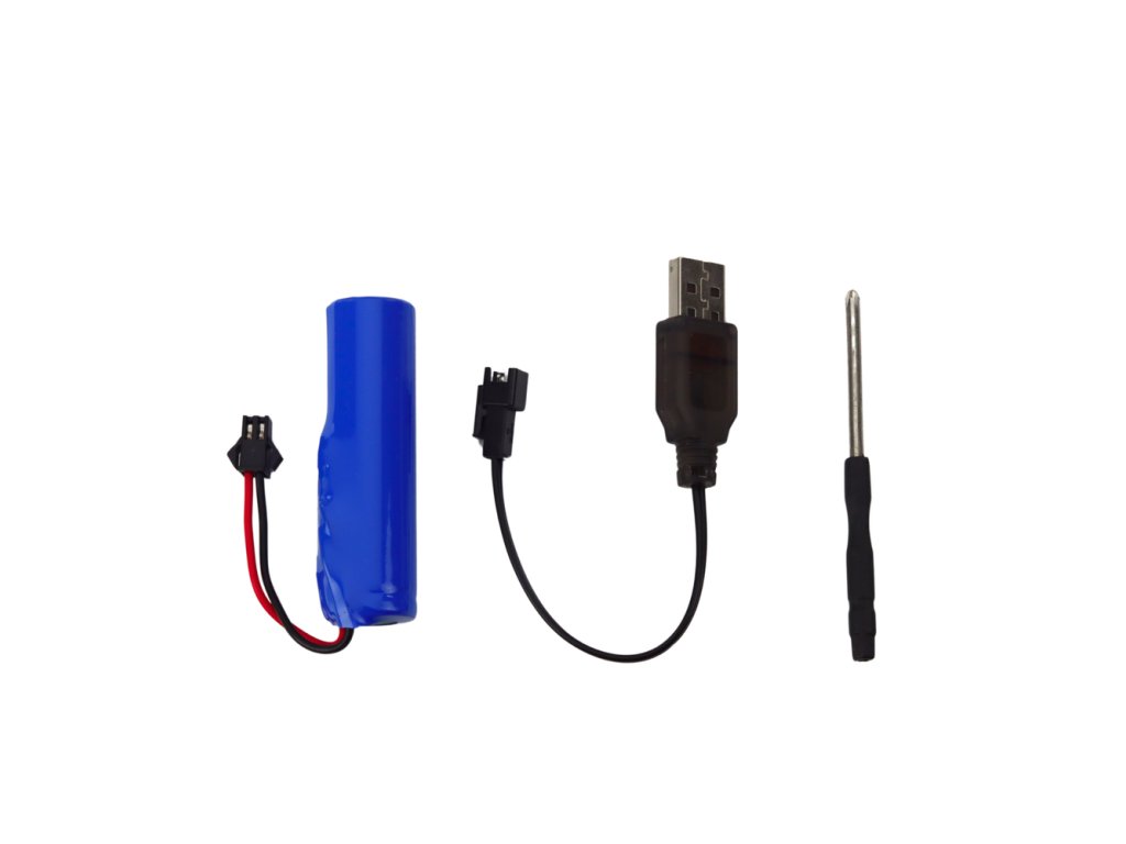 Pistola je napájaná 3,7 V Li batériou, ktorú možno ľahko nabiť pomocou priloženého USB kábla. Súprava obsahuje aj skrutkovač pre ľahký prístup do priestoru pre batériu – všetko, čo potrebujete, aby ste mohli začať hrať hneď po vybalení z krabice.