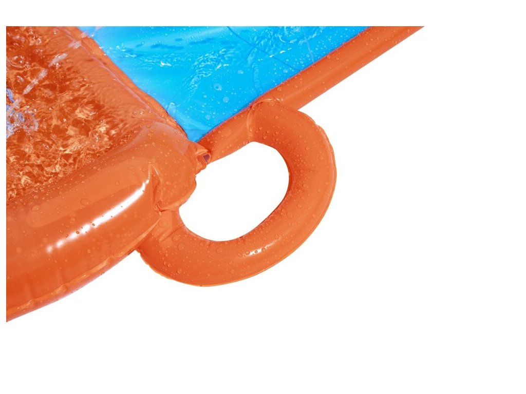 Na konci dráhy je zabudovaný bazén, ktorý zabezpečuje mäkké pristátie a príjemne ochladzuje telo. Šmýkačka je vyrobená z pevného vinylu. Je odolná voči poškodeniu, mäkká na dotyk a nedráždi pokožku vášho dieťaťa. Šmýkačka je ľahká, praktická a nezaberá veľa miesta.