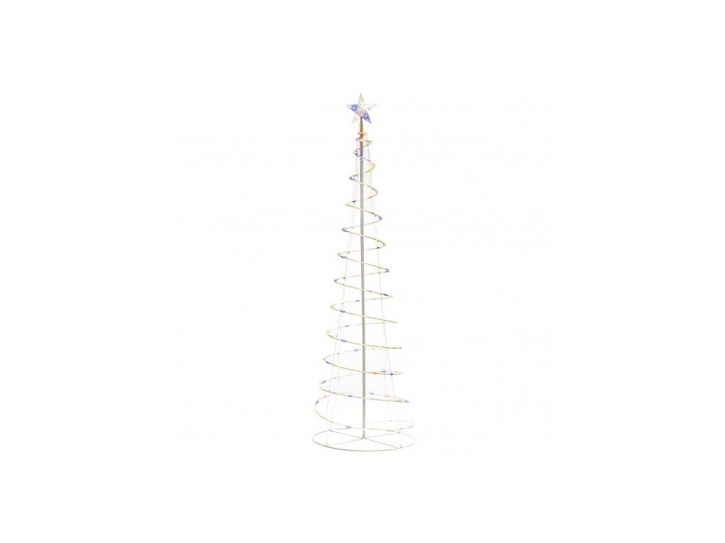 Vysoký vonkajší vianočný stromček vybavený 120 kusmi viacfarebných mini LED. Je to návrh na oživenie vianočných dekorácií na terase alebo balkóne. Hodí sa aj ako dekorácia v interiéri alebo ako súčasť väčšej kompozície. Spirálová konštrukcia je zakončená 17 cm hviezdou. LED dekorácia je nielen moderným, ale aj úsporným riešením. Svietiaci stromček dodá každej vianočnej výzdobe jedinečný charakter.