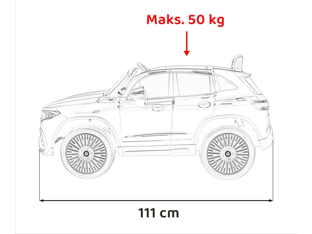 | Rozmery vozidla: | Dĺžka 111 cm,Šírka 67 cm,Výška 49 cm |