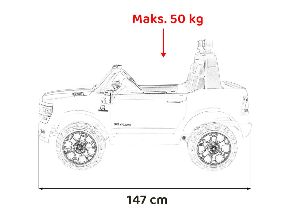 | Rozmery vozidla: | Dĺžka 147 cmŠírka 90 cmVýška 84 cm |