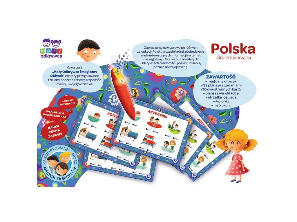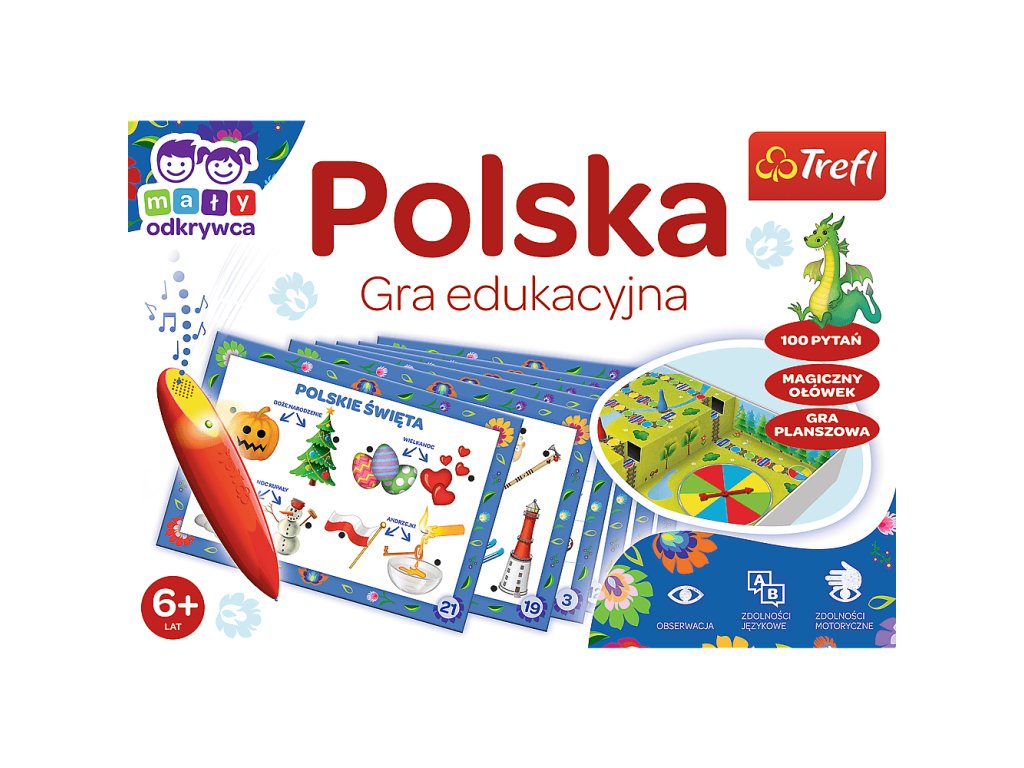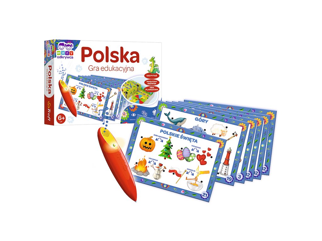Trefl Poľsko – Malý výskumník a Magic Pencil vzdelávacia hra pre deti od 6 rokov Poľsko je vzdelávacia hra pre deti, v ktorej sa Malí výskumníci vydávajú na cestu a po ceste sa dozvedajú mnoho zaujímavých faktov o našej krajine.