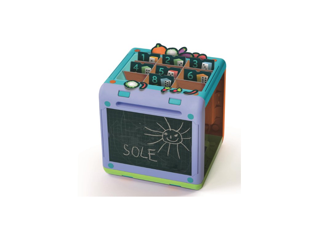 Originálna multifunkčná kocka vyrobená z recyklovaného plastu a lepenky, so štyrmi rôznymi úrovňami hry a materiálmi pre množstvo vzdelávacích hier. Pri hre sa deti učia všetko o písmenách, číslach, zvieratách, tvaroch a farbách prostredníctvom plnenia úloh súvisiacich s ekológiou a recykláciou, v súlade s filozofiou Play For Future. Každá strana kocky je hernou úrovňou a obsahuje skrýšu s kartami, kartónovými škatuľami, prvkami, ktoré sa dajú použiť rôznymi spôsobmi, ako aj tipy, ako používať recyklované materiály. Hra s písmenami pomáha deťom učiť sa písmená spájaním predmetov na obrázku s príslušnými iniciálami, ktoré by mali byť umiestnené na úrovni abecedy. Číselná hra v záhrade pomáha deťom naučiť sa počítať rozdelením záhrady na záhony a spájaním zeleniny s kartami, na ktorých sú uvedené správne čísla. Spoluprácou založená hra učí deti, ktoré sa hrajú na upratovanie mesta, rešpektovať prírodu, byť zodpovednými občanmi a triediť odpad.