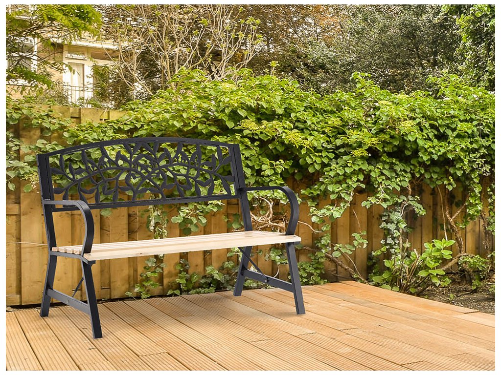 Rozmery lavičky poskytujú dostatok priestoru pre dve osoby a zároveň nezaberajú veľa miesta. Stabilitu zabezpečuje pevná skrutkovaná konštrukcia a profil 20 × 40 × 0,9 mm, ktorý zvyšuje celkovú tuhosť rámu. Kombinácia čiernej ocele a prírodného dreva pôsobí elegantne a ľahko sa kombinuje s moderným aj klasickým záhradným nábytkom.