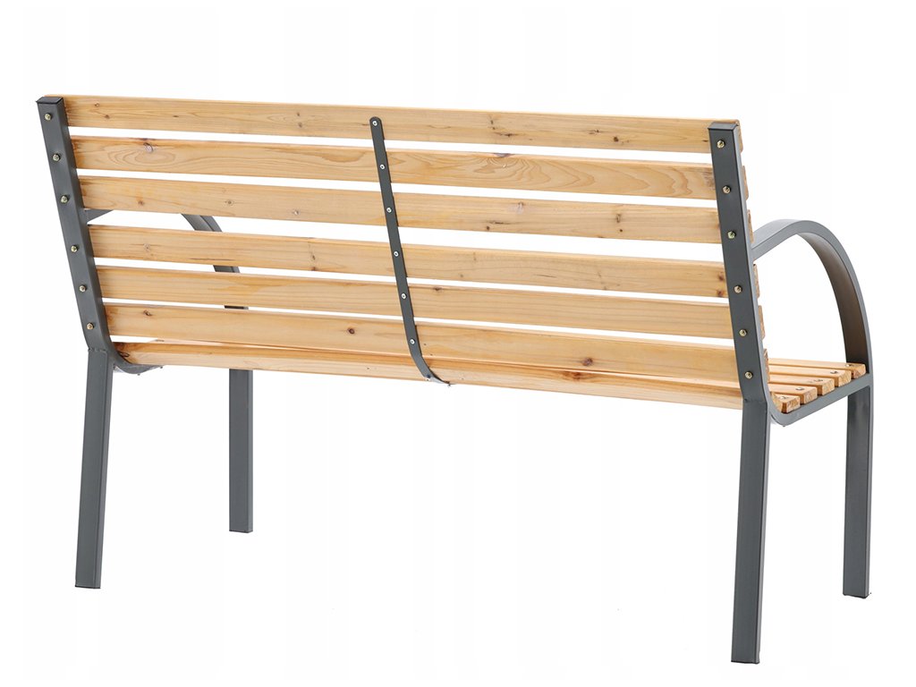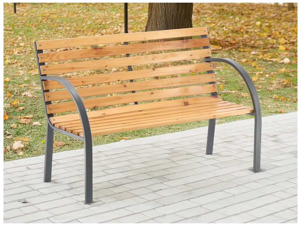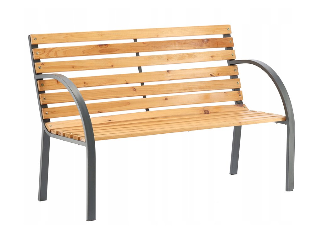 Sedadlo aj operadlo sú vyrobené z tlakovo impregnovaného a lakovaného dreva, ktoré je ošetrené proti vlhkosti, plesniam a bežnému opotrebeniu. Práškovo lakované kovové nohy zabezpečujú pevnosť a odolnosť voči korózii, takže lavička bez problémov zvládne každodenné používanie v exteriéri. Ergonomický tvar operadla poskytuje komfort pri sedení, či už ide o čítanie knihy, rannú kávu alebo večerný oddych.