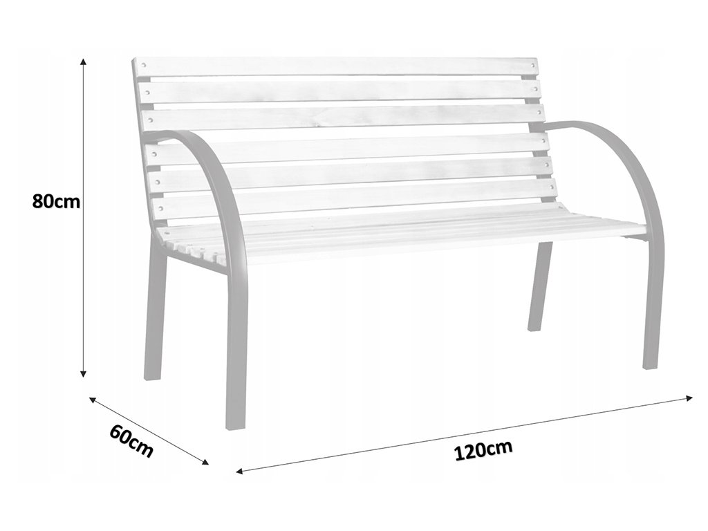 Rozmery 120 × 60 × 80 cm ponúkajú dostatok priestoru pre dve osoby, pričom lavička nezaberá veľa miesta. Skrutkovaná konštrukcia zvyšuje stabilitu a nosnosť až do 150 kg. Výhodou je aj jednoduchá montáž – balenie obsahuje všetky potrebné spojovacie prvky a prehľadný návod.