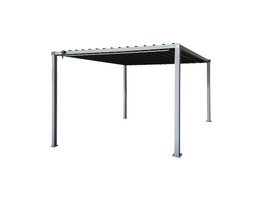 ZÁHRADNÁ PERGOLA S OCELOVOU STRECHOU 3 x 3 x 2,2 M ŠEDÁ *5122