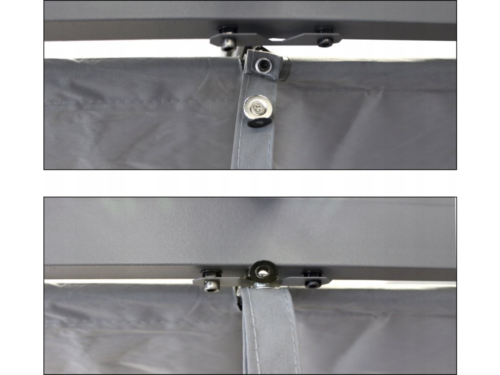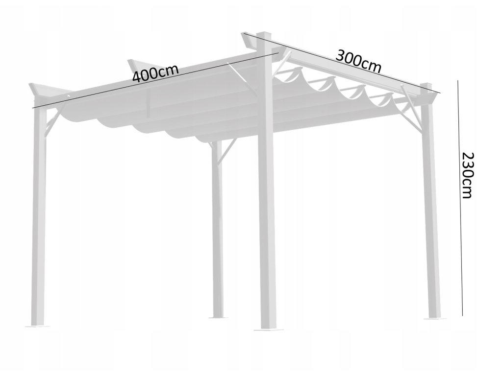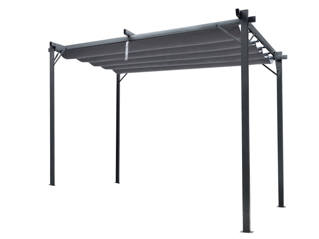 Rám našej pergoly je vyrobený z oceľových profilov s práškovým náterom, čo zaručuje pevnosť a stabilitu konštrukcie. Krytina je vyrobená z hrubej polyesterovej tkaniny s hmotnosťou 300 g/m2, ktorá vďaka svojej nepremokavej konštrukcii poskytuje nielen ochranu pred slnkom, ale aj pred ľahkým dažďom.