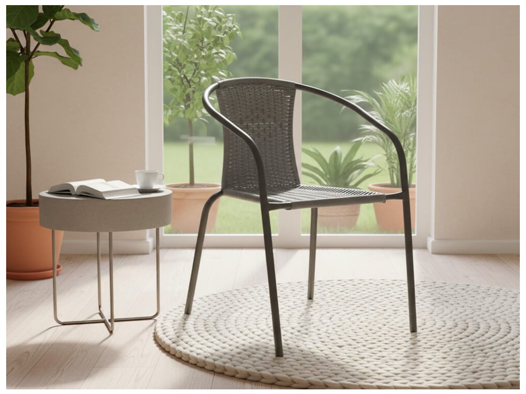 Záhradná stolička v elegantnej sivej farbe, ktorá bude perfektným riešením pre vašu záhradu, terasu alebo balkón. Vďaka svojmu dizajnu zaručuje pohodlie a odolnosť a jej neutrálna farba sa perfektne hodí do rôznych štýlov usporiadania vonkajších priestorov.