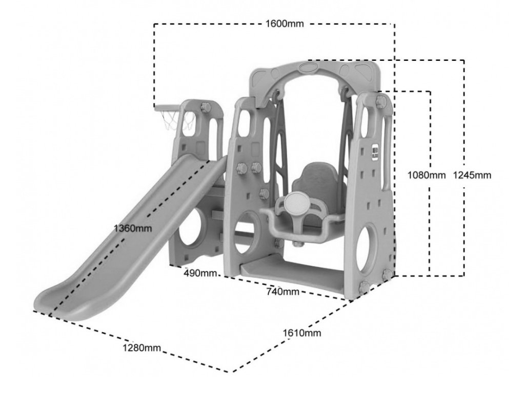 | Špecifikácia | Záhradná šmýkačka s hojdačkou a basketbalovým košom |