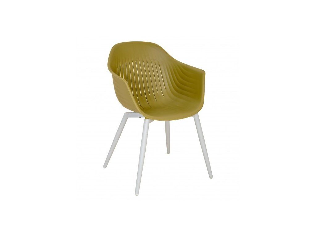 Olivová záhradná stolička, ktorá spája eleganciu, funkčnosť a udržateľný prístup k životnému prostrediu. Má certifikát GRS – Global Recycled Standard. Sedadlo stoličky je vyrobené z recyklovaného plastu, vďaka čomu je nielen pohodlné, ale aj šetrné k životnému prostrediu. Rám stoličky je vyrobený z odolného hliníka, lakovaného práškovou farbou, čo ho nielen chráni pred poveternostnými vplyvmi, ale aj dodáva elegantný vzhľad. Biele nohy stoličky pokryté potlačou Transfer Print dodávajú nábytku jemnosť a modernosť.