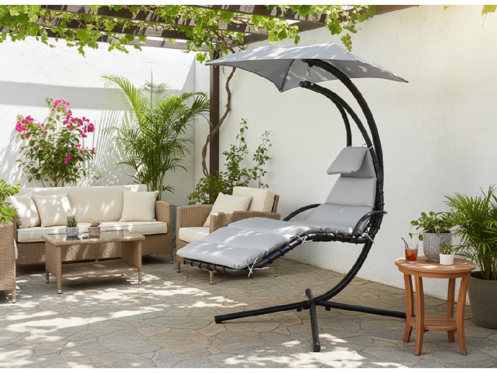 Relaxujte štýlovo – sivá záhradná hojdacie kreslo je dokonalou kombináciou pohodlia a moderného štýlu. Pre tých, ktorí milujú pokoj, ticho a lenivé popoludnia vonku.