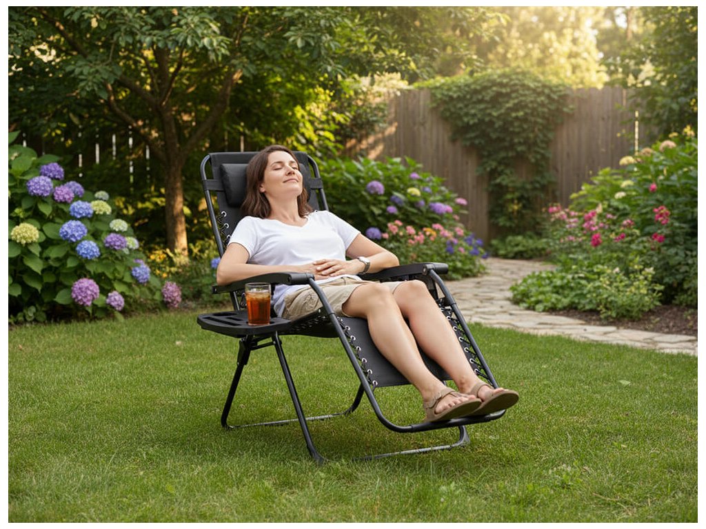 Záhradné skladacie relaxačné kreslo Zero prináša nový rozmer pohodlia a oddychu vo vašej záhrade, na terase či balkóne. Špeciálna konštrukcia s efektom nulovej gravitácie rozkladá váhu tela rovnomerne, čím odľahčuje chrbticu, uvoľňuje svalové napätie a vytvára pocit príjemnej beztiaže. Vďaka tomu je kreslo ideálne na dlhý relax, čítanie knihy aj popoludňajší oddych na čerstvom vzduchu.