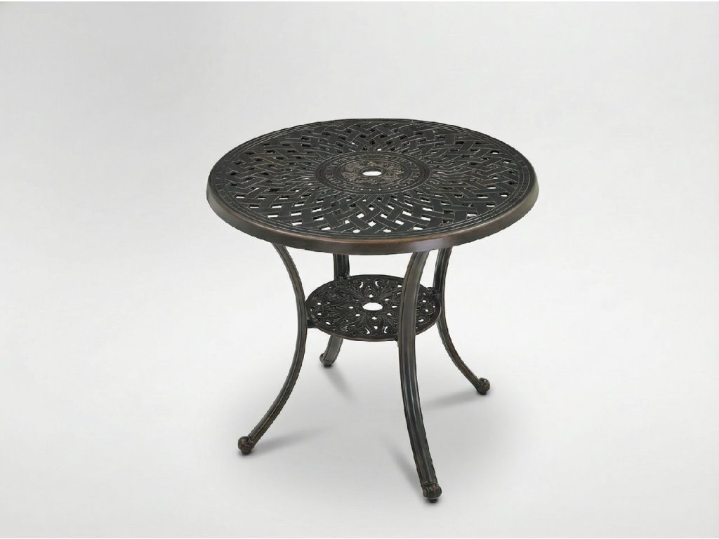 Záhradný hliníkový okrúhly stôl Mondrich v antickom bronzovom prevedení je ideálnou voľbou pre všetkých, ktorí hľadajú štýlový záhradný stôl z hliníka, ktorý spája eleganciu, odolnosť a dlhú životnosť. Dekoratívne spracovanie v klasickom štýle spolu s teplým odtieňom antickej hnedej vytvára luxusný prvok vhodný do záhrady, na terasu, balkón aj do reprezentatívnych komerčných priestorov.