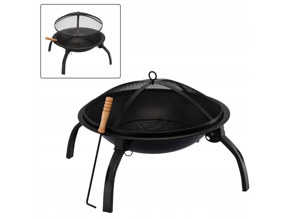 Záhradný ohnisko s vekom a pohrabákom je ideálnym riešením pre vašu záhradu, ktoré vám umožní bezpečne a pohodlne si užívať teplo ohňa. Vďaka skladacím nohám a tepelne odolnej farbe je praktické a odolné voči vysokým teplotám. Súčasťou sady je aj pohrabák s drevenou rukoväťou pre pohodlné používanie.