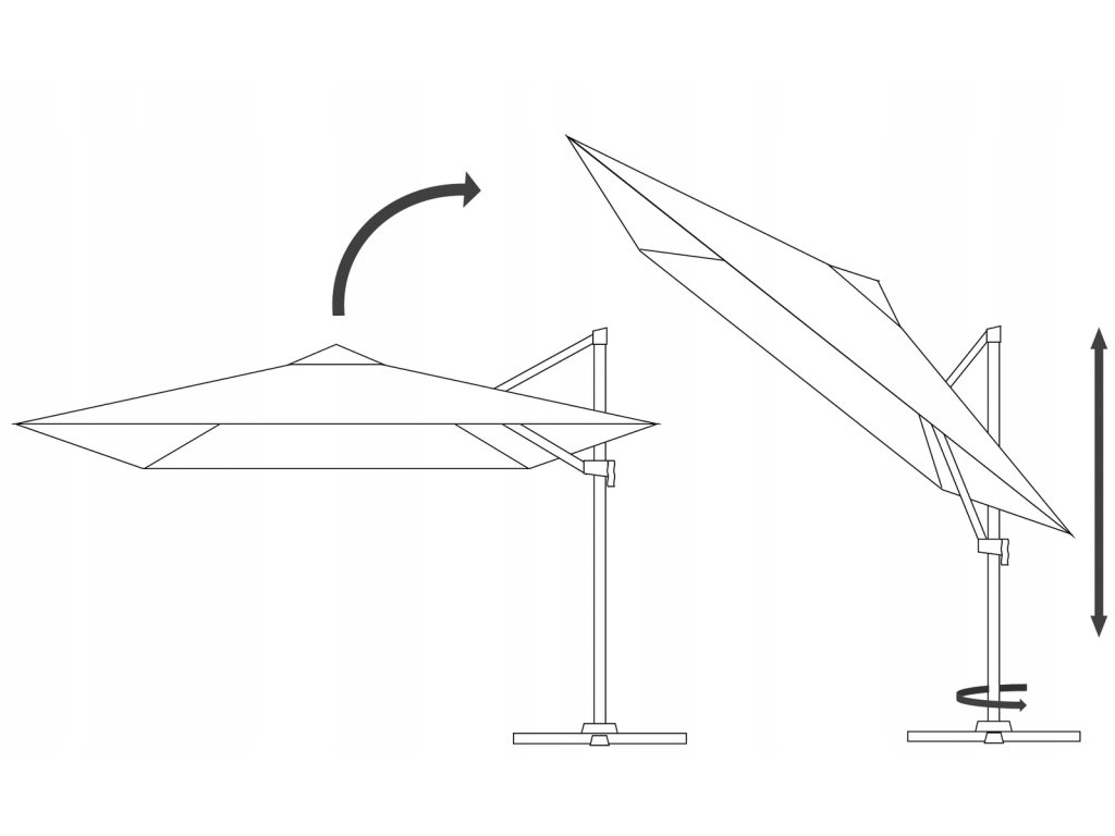 Slnečník má nastaviteľný sklon a otáčanie. To umožňuje ochranu pred slnečnými lúčmi bez ohľadu na ich uhol dopadu. 🌒