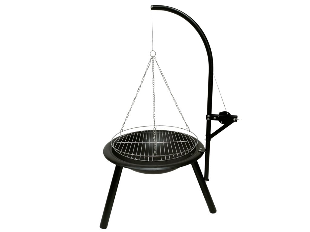 Pochrómovaný grilovací rošt s priemerom 50 cm je výškovo nastaviteľný pomocou pevnej reťaze a integrovaného kľukového mechanizmu, čo umožňuje plynulo regulovať vzdialenosť pokrmov od ohňa a mať tak dokonalú kontrolu nad intenzitou tepla. Stabilná trojnožková konštrukcia zabezpečuje bezpečné používanie aj na nerovnom povrchu, pričom žiaruvzdorný náter chráni konštrukciu pred vysokými teplotami a predlžuje jej životnosť.