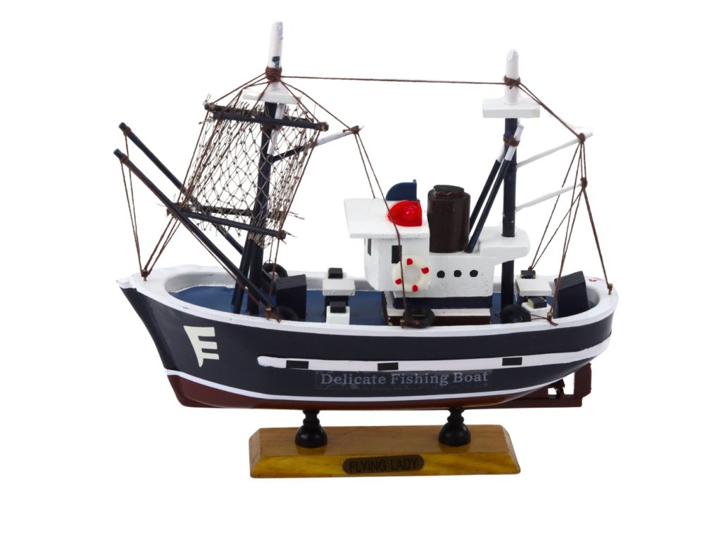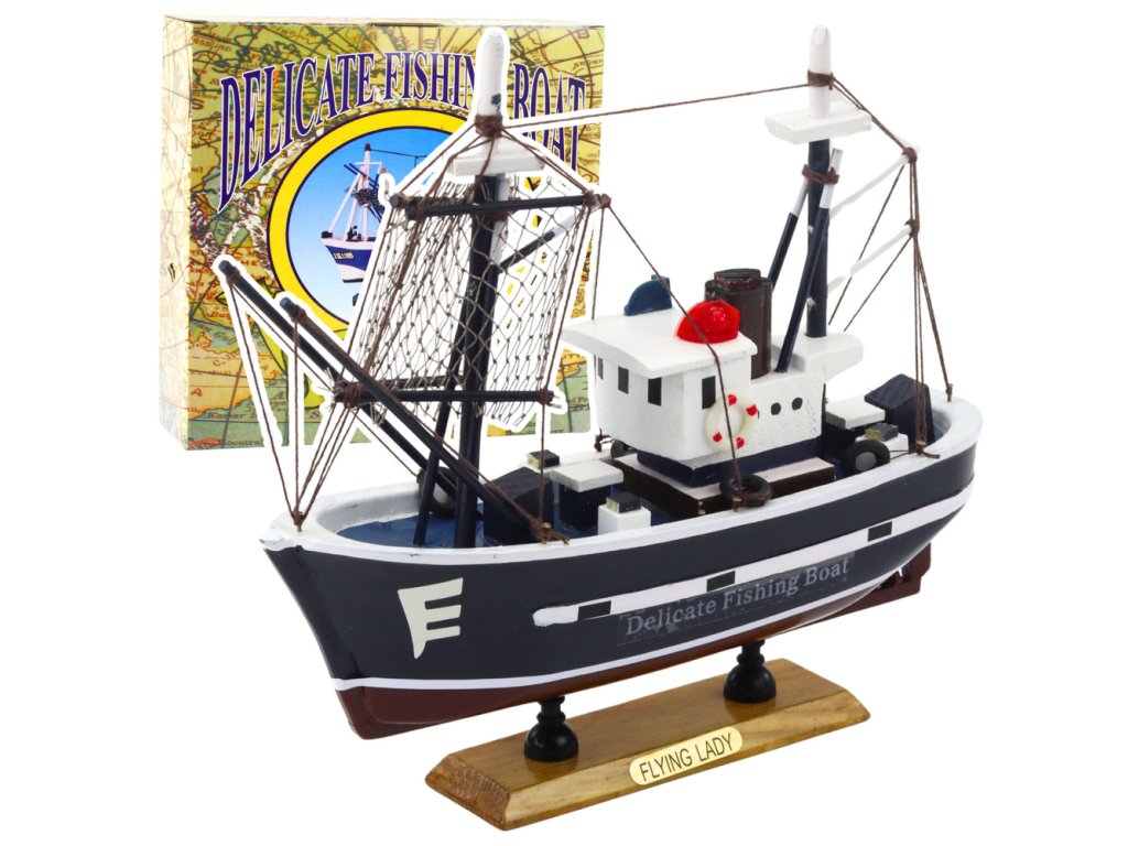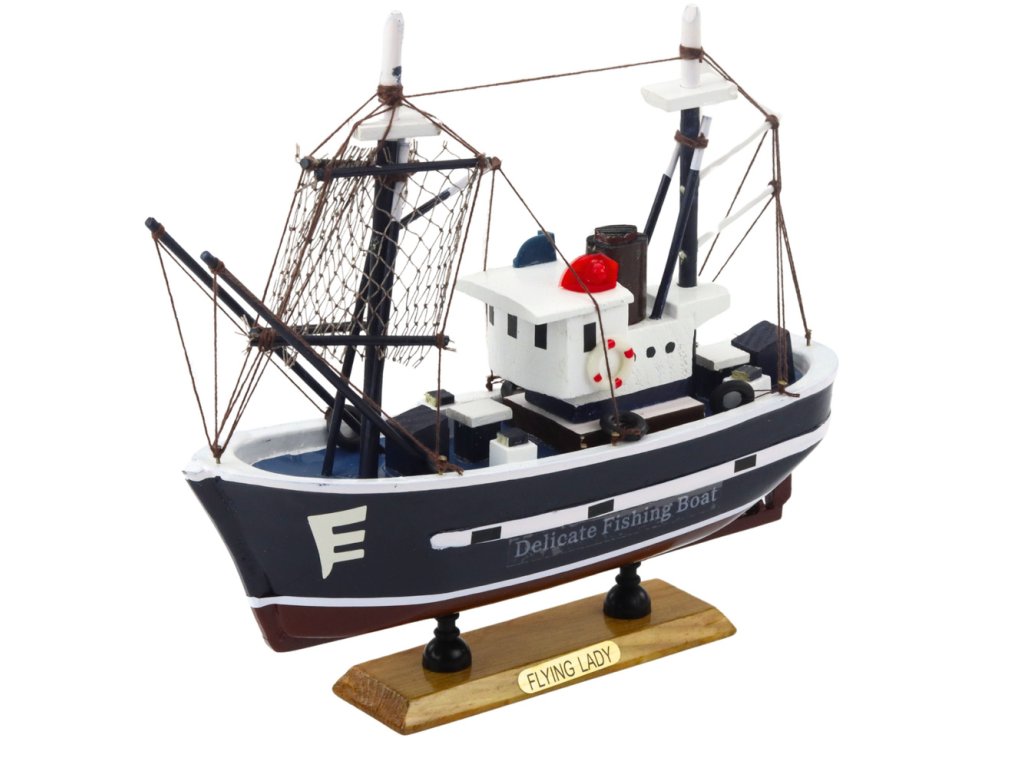 Model „Flying Lady“ je dekoratívnou replikou klasickej rybárskej lode, inšpirovanou plavidlami používanými na pobrežný a prístavný rybolov. Jeho charakteristická nadstavba, vysoká kormidlovňa, jediný sťažň s lanovím a technické detaily, ako napríklad imitácie radarov a komínov, mu dodávajú jedinečný, realistický vzhľad. Celý model je vyrobený z dreva a ručne dokončený, čo mu dodáva zberateľskú hodnotu a výrazný námorný charakter.