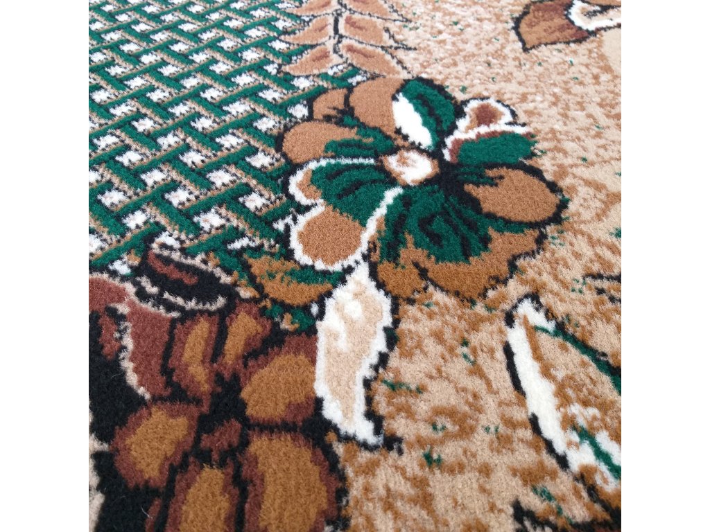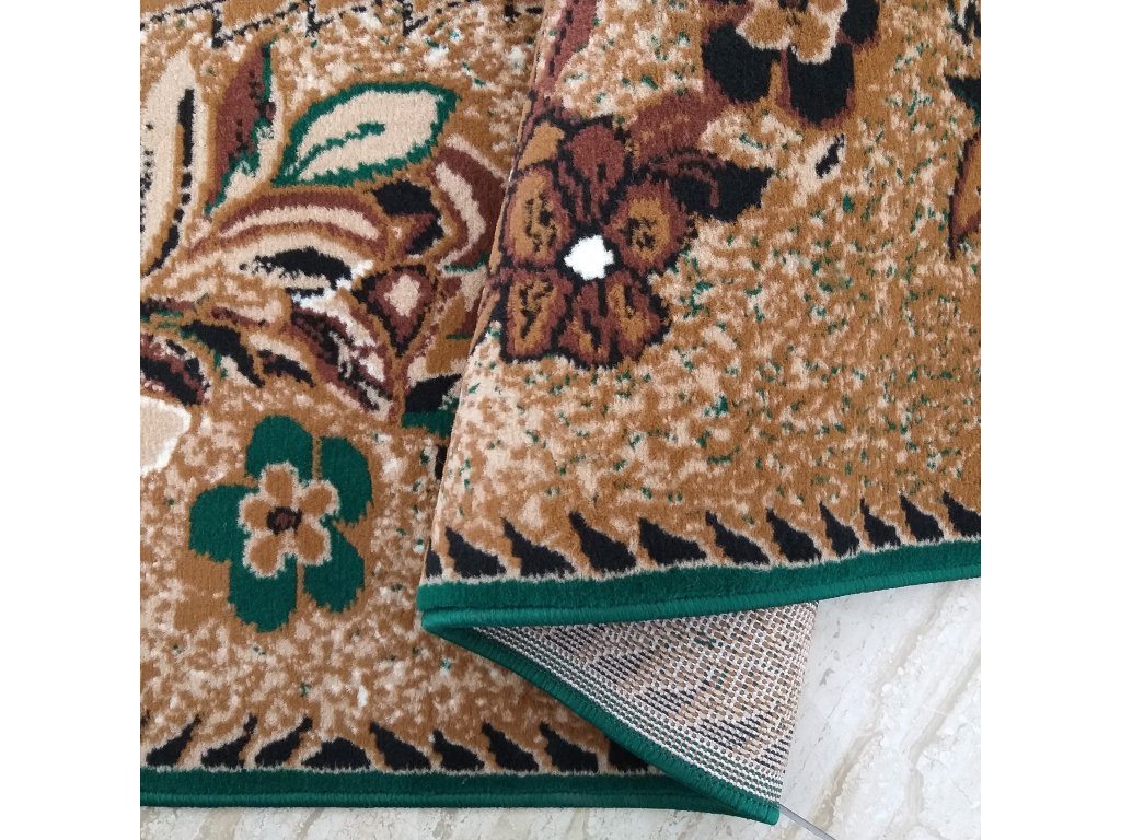 Oživte svoj domov s zeleným kobercom s kvetinovým vzorom Alfa. Tento nádherný koberec sa pýši tradičným, bohatým dizajnom, ktorý je nadčasový a ľahko doplní akýkoľvek interiér. Kvetinový vzor v sviežich odtieňoch zelenej a béžovej vytvára upokojujúcu atmosféru a vnáša do miestnosti kúsok prírody.