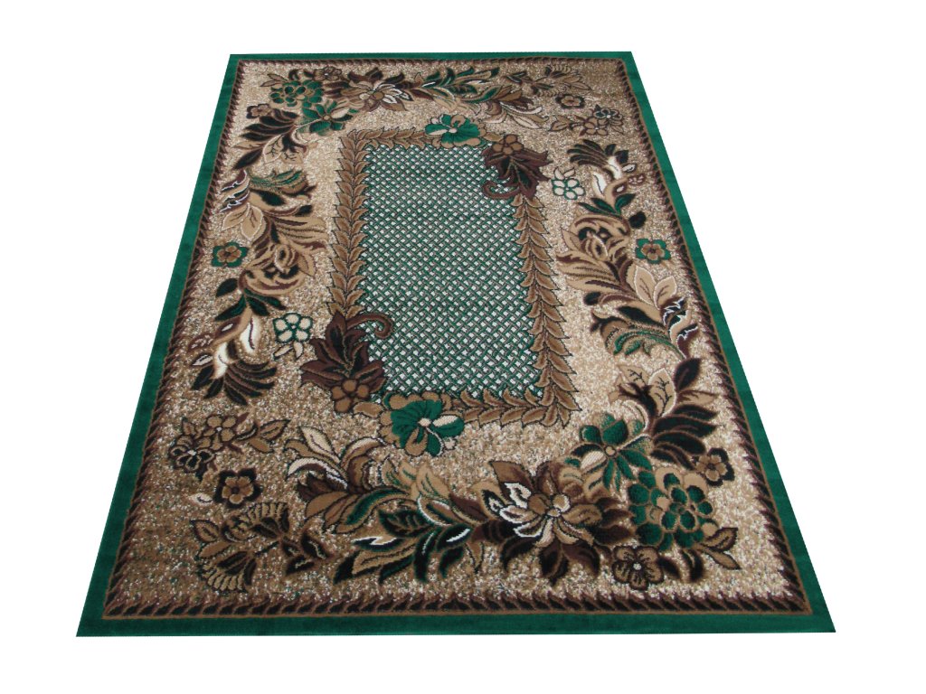 Zelený koberec s kvetinovým vzorom Alfa 01