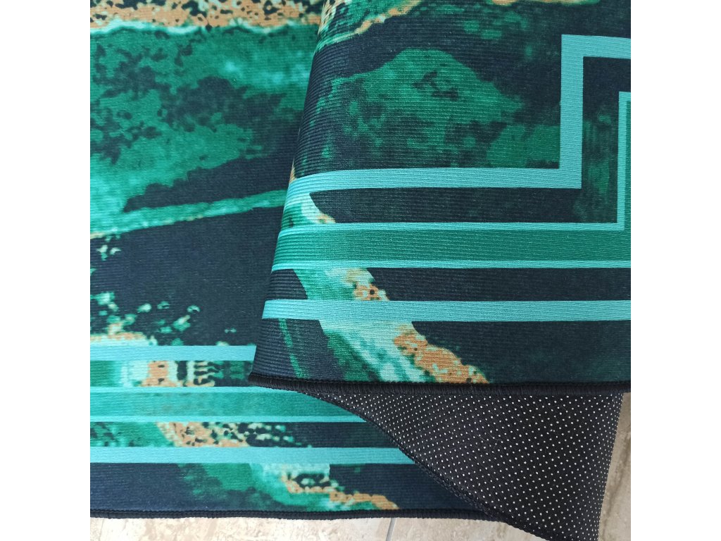 Zelený koberec s mramorovým vzorom Horeca-New prináša do interiéru sviežosť a luxusný vzhľad zároveň. Mramorový motív v jemných a elegantných líniách vytvára sofistikovanú vizuálnu textúru, ktorá dodáva priestoru hĺbku a štýl.