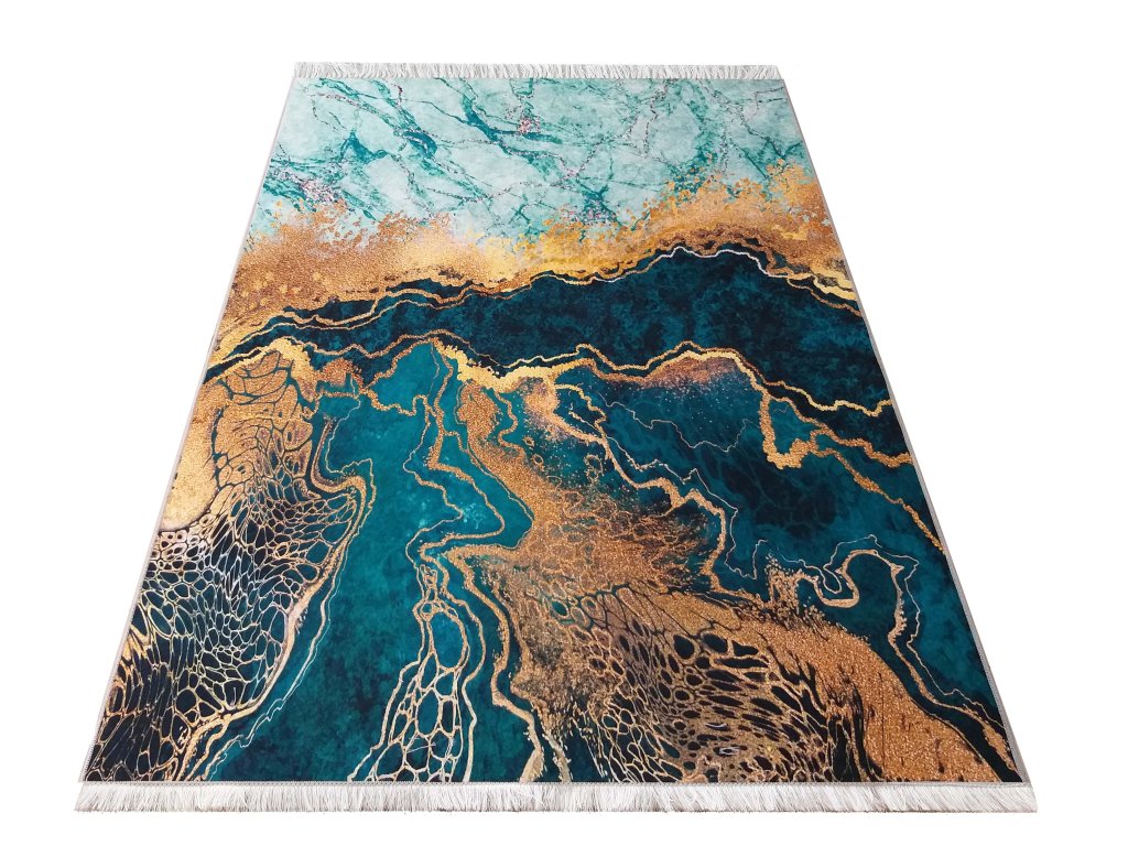 Abstraktný vzor dodáva kobercu umelecký charakter a vytvára výrazný dizajnový prvok, ktorý prirodzene upúta pozornosť. Zelená farba podporuje pocit pokoja a harmónie, zatiaľ čo zlaté akcenty dodávajú priestoru sofistikovaný vzhľad. Koberec sa hodí do moderných aj elegantných interiérov, obývačiek, spální aj reprezentatívnych komerčných priestorov.