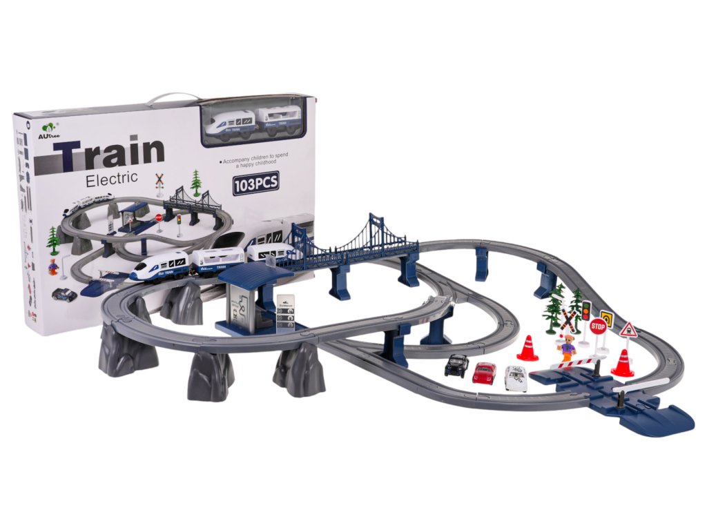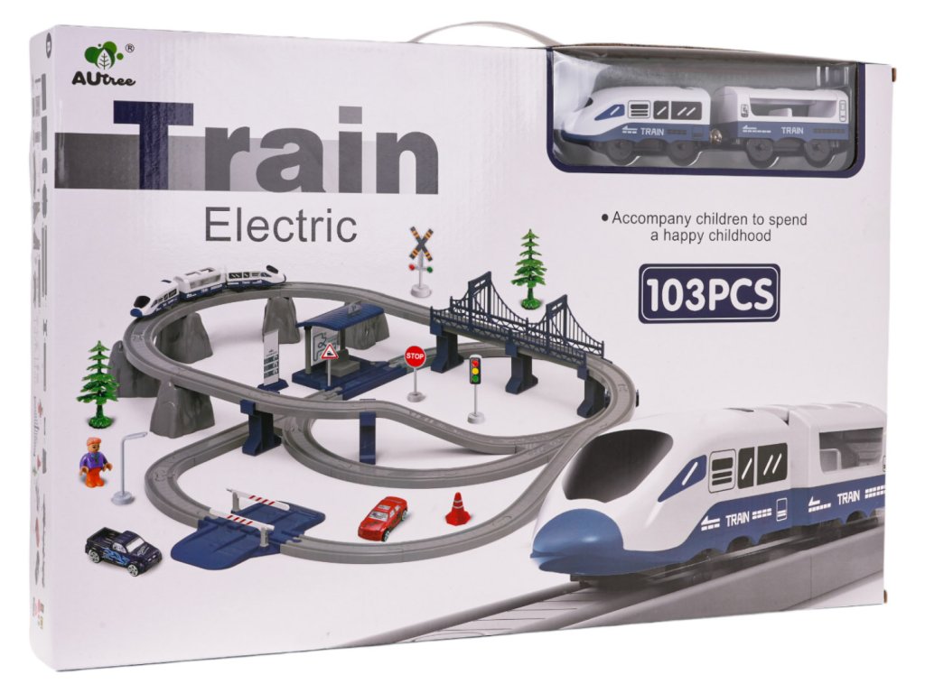 Bohato vybavená sada železničných koľajníc, vlaku a príslušenstva pre deti od 3 rokov. Súprava je vyrobená z najkvalitnejšieho plastu, je pevná a odolná. Obsahuje až 103 prvkov: stavebné prvky dvojúrovňovej koľajnice, vlak, stanicu so zvukovými a svetelnými efektmi, most, závoru, dopravné značky, autá a figúrku chlapca. Stanica je napájaná 3 batériami AG3 1,5 V (súčasťou balenia) a vlak 2 batériami AAA 1,5 V (nie sú súčasťou balenia). Vlastnosti sady: - vhodný pre deti od 3 rokov, - vyrobené z materiálov najvyššej kvality, - bohatá výbava 103 dielmi, - vagóny vlaku spojené silnými magnetmi, - stanica s osvetlením a zvukmi vlaku. |