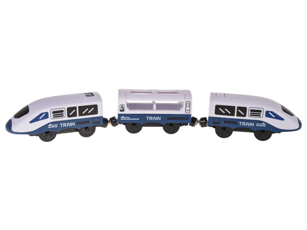 - Rozmery: - vlak cca 35 cm x 4,5 cm x 4 cm, - vagóny cca 8 cm x 3 cm x 3,5 cm, - značky cca 8 cm x 3 cm, - kužele cca 4,5 cm x ...