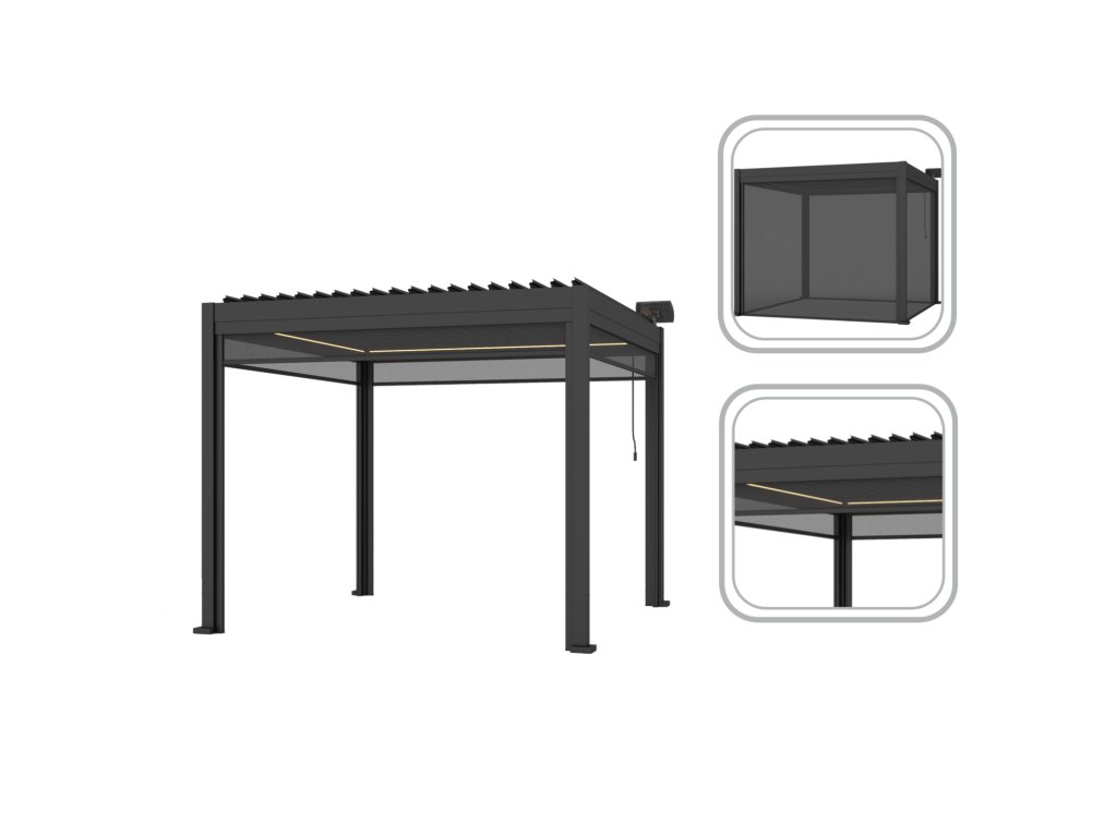 Ručná roleta bola navrhnutá ako praktický kryt, ktorý poskytuje ochranu pred slnkom a väčší komfort pri využívaní vonkajších priestorov. Je vyrobená z odolnej tkaniny Textilene Sunprey, ktorá dobre odoláva UV žiareniu a meniacim sa poveternostným podmienkam a zachováva primerané napnutie a stabilitu.Neutrálna sivá farba zaisťuje vizuálnu súdržnosť s modernými pergolami.